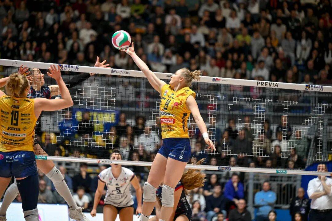 这场比赛不仅是联赛关键战,更是即将到来的意大利杯四强赛的“前哨战”,两队将在两周后将会再次在都灵交手,争夺意杯决赛资格,双方本场均尽遣主力,场上汇聚多位世界级球星,包括朱婷、加比、哈克、法尔等,现场气氛热烈,观众座无虚席。