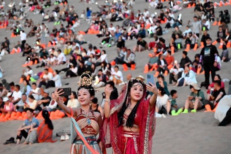 当暮色漫过鸣沙山的脊梁,晚风轻抚月牙泉的碧波,一场万名游客自发共唱的“落日合唱派对”在甘肃敦煌火热上演。大漠为幕布,沙丘为舞台,不但有手机电筒的“满山星光”,还有“生成式AI+多模态互动”技术联动线上线下,直播间数十万用户同步沉浸式参与,全网曝光量突破12亿次。