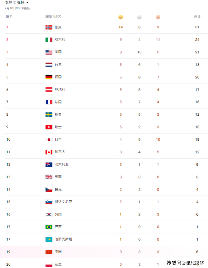 排在挪威身后的代表团是东道主意大利,已经收获9金4银11铜,总共24枚奖牌,无论金牌数,还是奖牌数,都已经创造历史最佳战绩,很好地把握住东道主的优势。