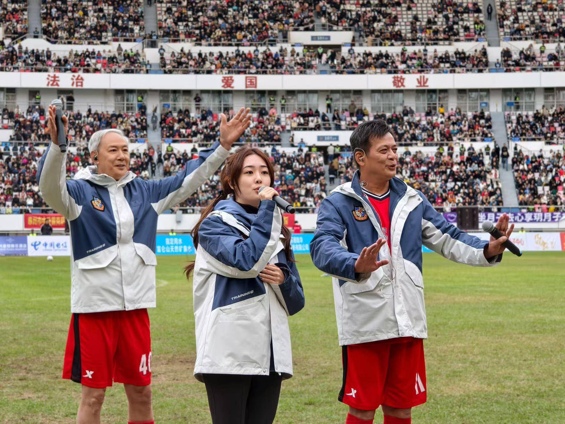在当天的比赛中,黄日华、何家劲、梁汉文等明星纷纷登场亮相。中场休息环节,组委会还举办了抽奖活动,并邀请球员和球迷展开互动,合唱《铁血丹心》《新鸳鸯蝴蝶梦》《卡拉永远OK》等经典曲目。